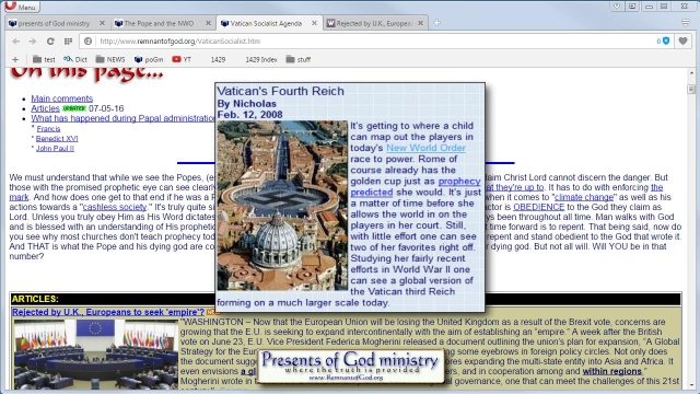 Had Hillary or Trump won without a single Christian vote, Rome would have been shaking in their cassocks wondering how they will ever be able to corral the Christians seeing how they are still obeying the Lord to keep out of politics and let the wicked of the world play their games in government as they always have. But now that the Christians jumped into the political playground in a massive and historic show of hands, the left can now use this new found hot button to manipulate them into just about any direction they want. And that is exactly what prophecy says they will do. The Vatican's New World Order will no longer be just on paper; it will be part of our day to day lives in reality a lot sooner than most care to ponder. In fact, what we are about to witness was not only prophesied, it was boasted by the prelates of Rome as their NWO agenda for decades.