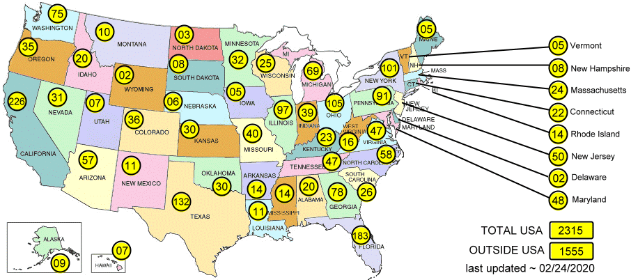 Let's meet >Below map illustrates the number of families that have contacted this ministry seeking a church that teaches and preaches the present truth found on this website.